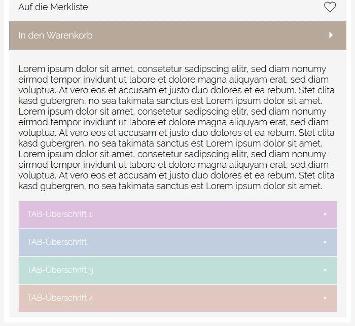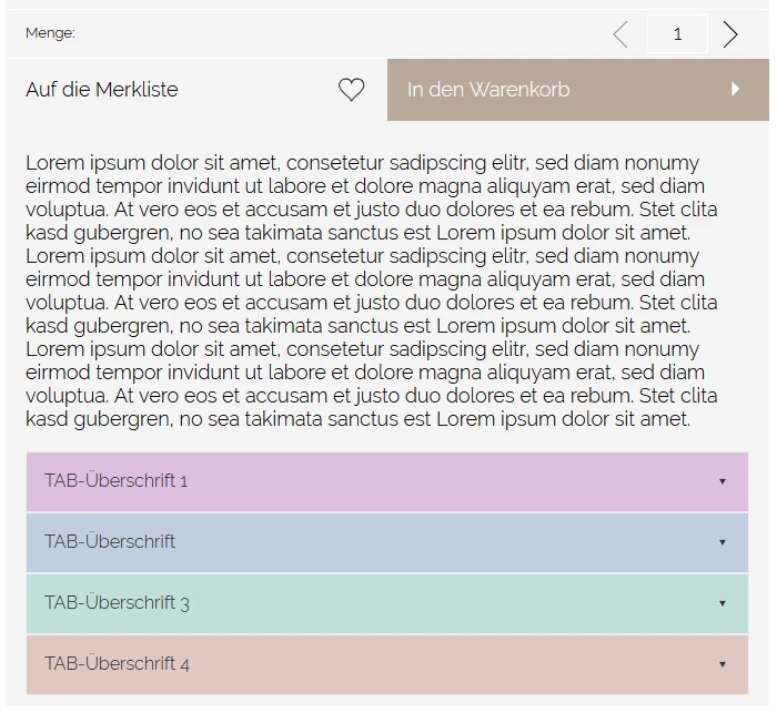 Wie auch die TABs, können Sie Aufklapptexte nutzen, um sehr viele Daten/Texte übersichtlich auf kleinen Raum zu verstauen. Diese sind auch für SEO gut, da Google die Texte komplett liest, auch wenn sie erst nach dem Aufklappen vollständig sichtbar sind.